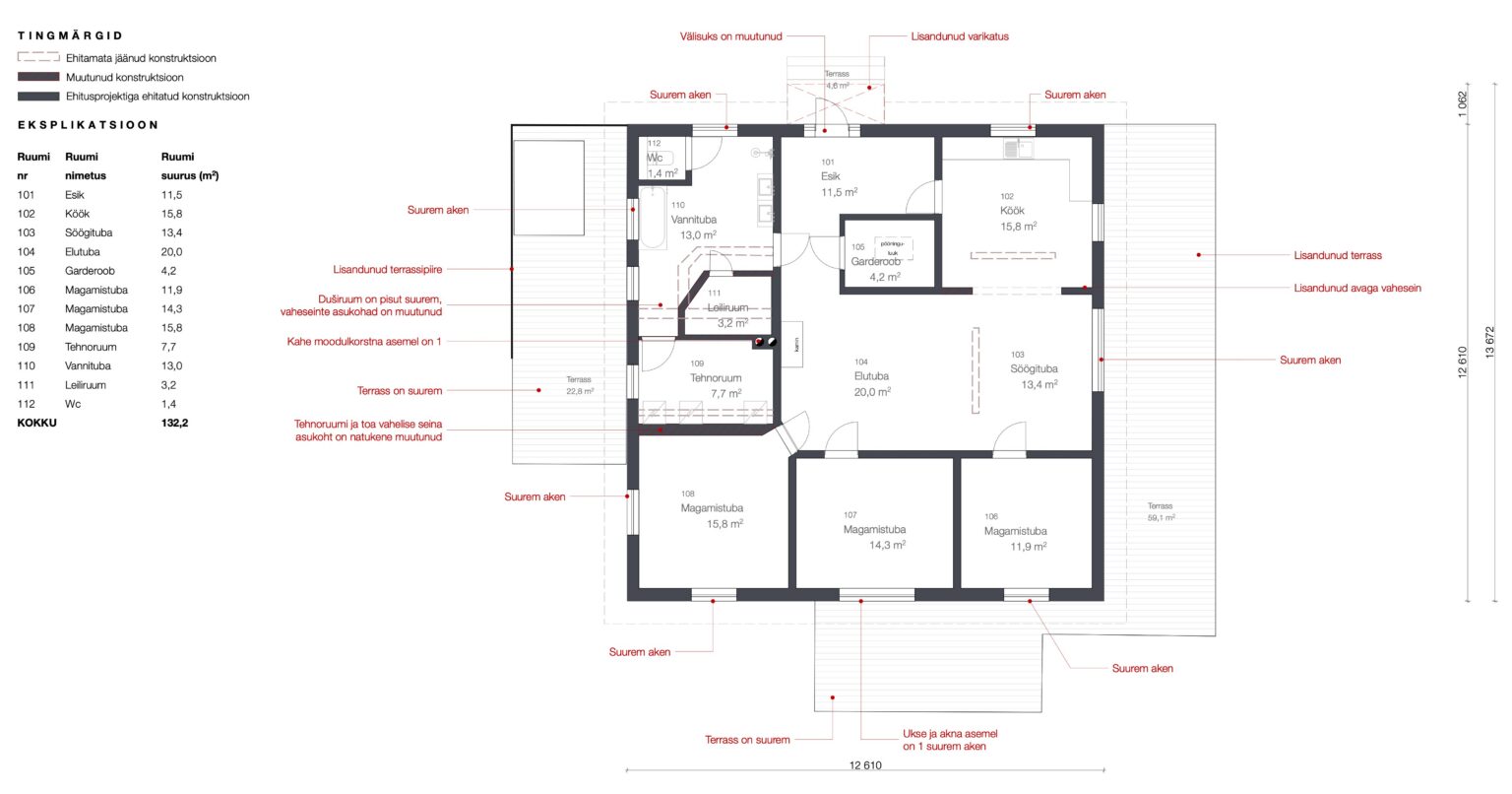 Kui ehituse käigus on tehtud muudatusi võrreldes algse ehitusloa saanud ehitusprojekti lahendusega. Näiteks muutus: